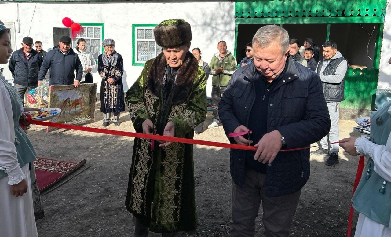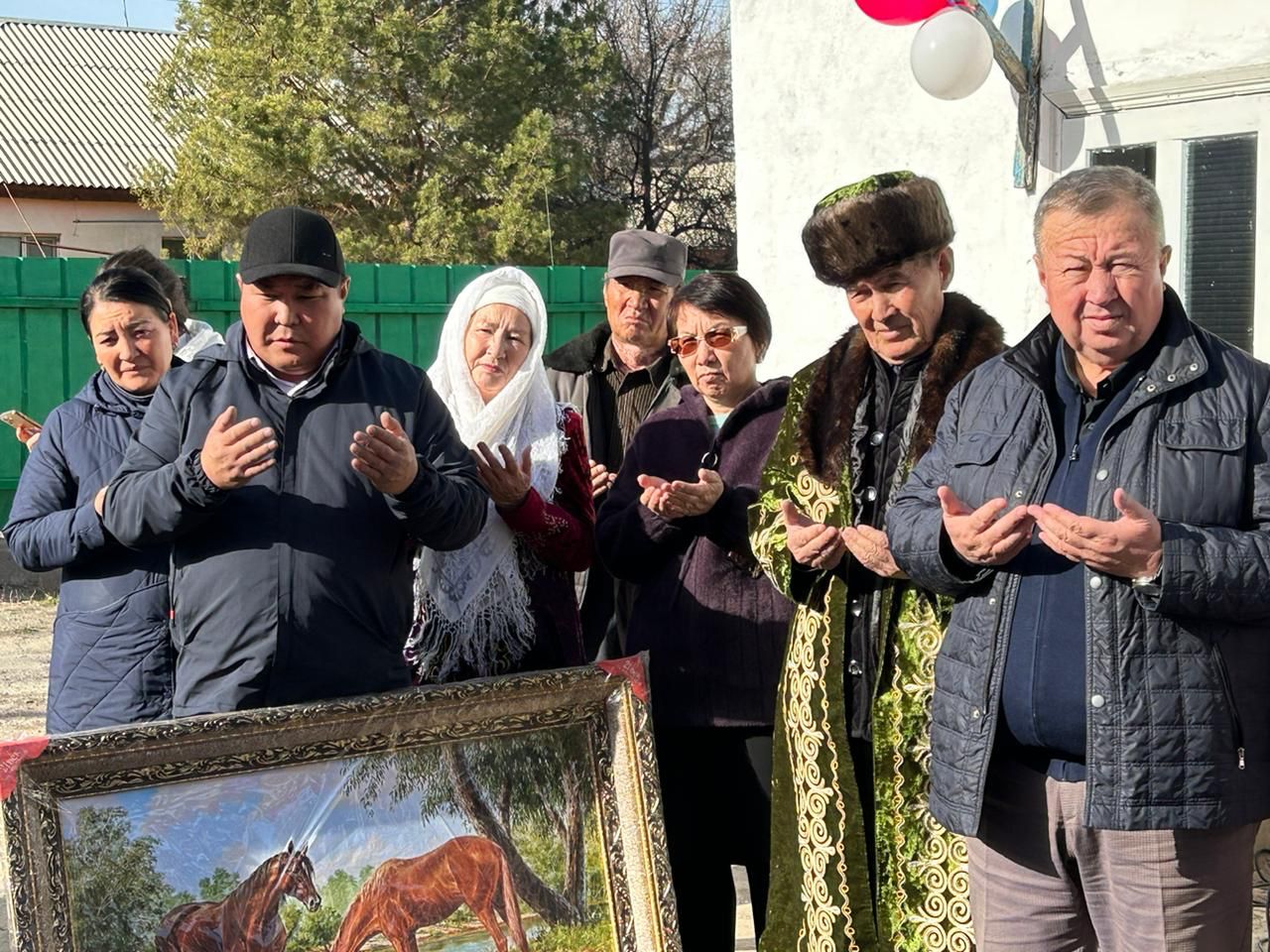 Осыдан кейін ауыл биі Кемпірбай ақсақал құттықтау сөз сөйлеп, ауыл ақсақалдары алқасының төрағасы М.Иманалиев ақ батасын берді. Асарлатып салынған үйдің лентасын ауыл ақсақалы М.Иманалиев пен аудан басшысы Ә.Балқыбеков қиып, әжелер тәттіден шашуларын шашты.