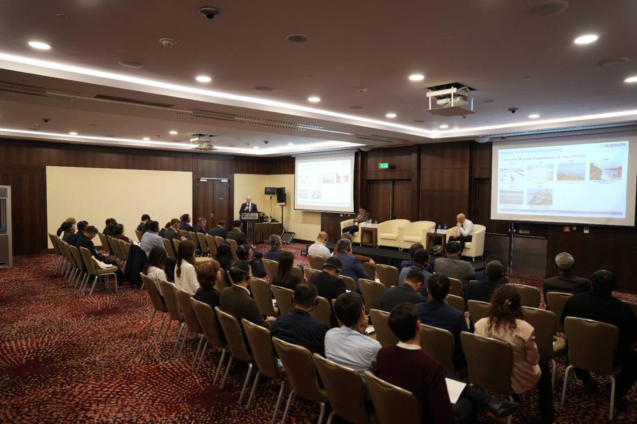 Конференцияда компания өкілдері гидротехникалық құрылыс, көлік инфрақұрылымы, экологиялық инжиниринг және тау-кен өндірісі салаларындағы жаңа технологиялар жайлы баяндап берді.