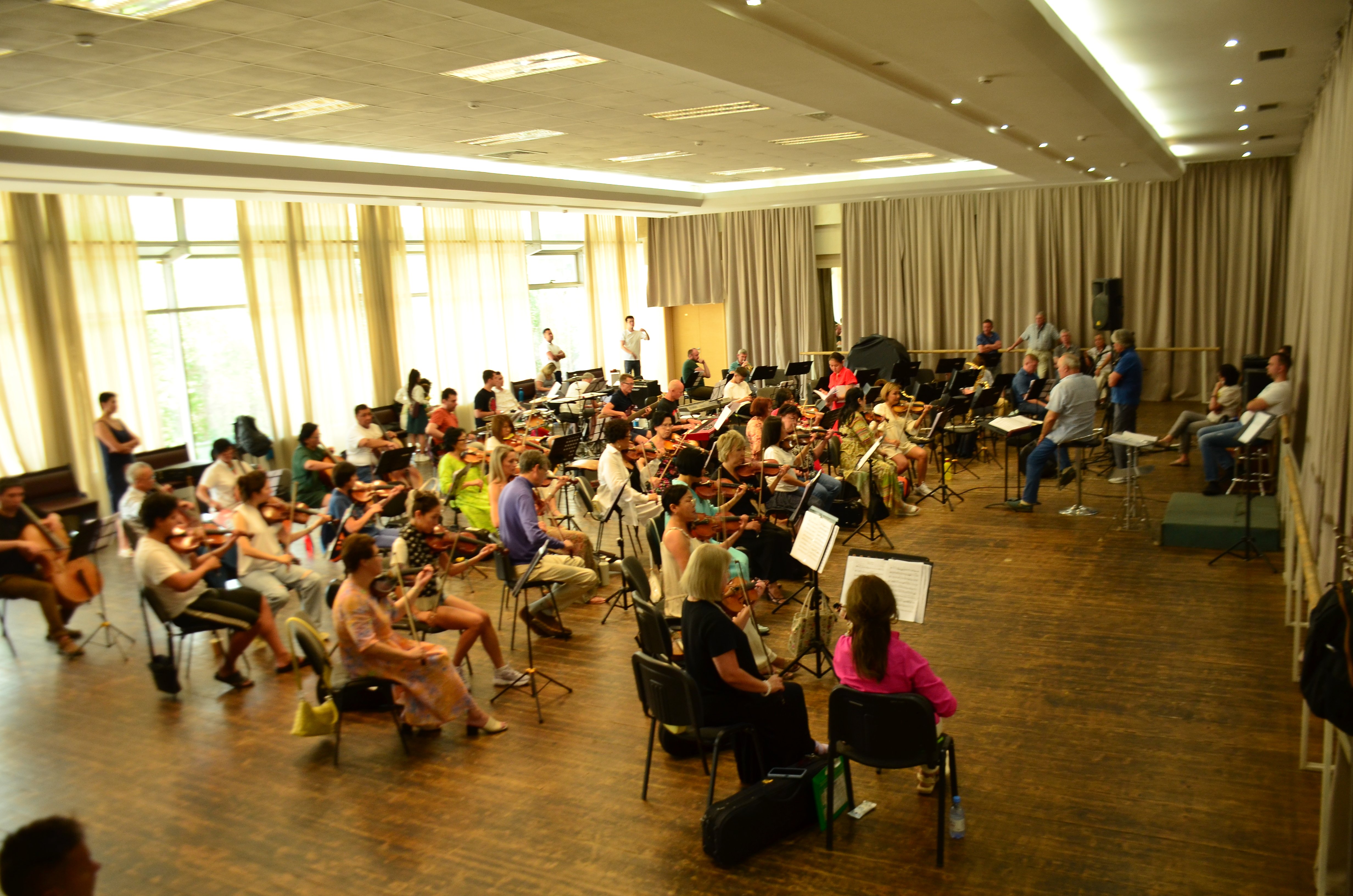Медеуде сахнаның құрылысы аяқталды. Онда бүгін балалар флешмобының репетициясы өтеді. Сахнаның дизайны ерекше - ол фестивальдің басты символы - Тамбалы петроглифтерінде бейнеленген Күн басты мақұлықты ұқсататын болады. Ал Республика сарайында әртістер Александр Беляковтың жетекшілігіндегі эстрадалық-симфониялық оркестрмен жаттығуда.
