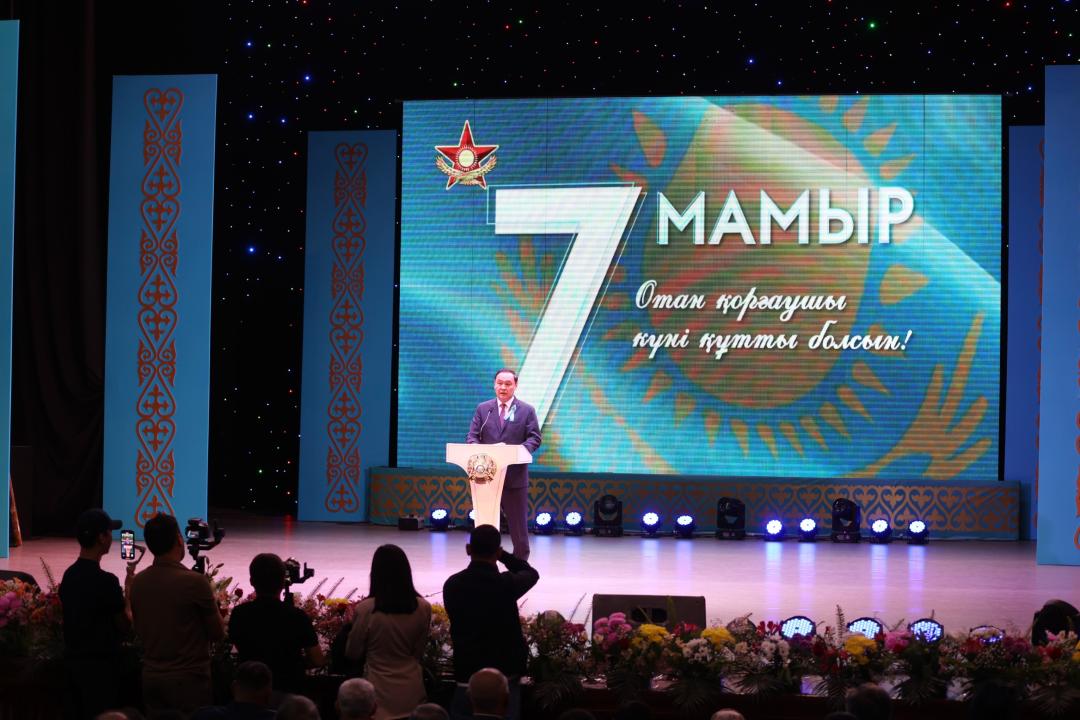 Жамбыл облысының әкімі Ербол Қарашөкеев 7 мамыр – Отан қорғаушы күні мерекесіне орай ұйымдастырылған салтанатты жиынға қатысты.Баласағұн ОКЗ-да өткен шараға құзырлы орган басшылары, әскери қызметшілер, «Оңтүстік» өңірлік қолбасшылығы, Ұлттық ұлан және шекара қызметінің өкілдері мен облыс тұрғандары қатысты.