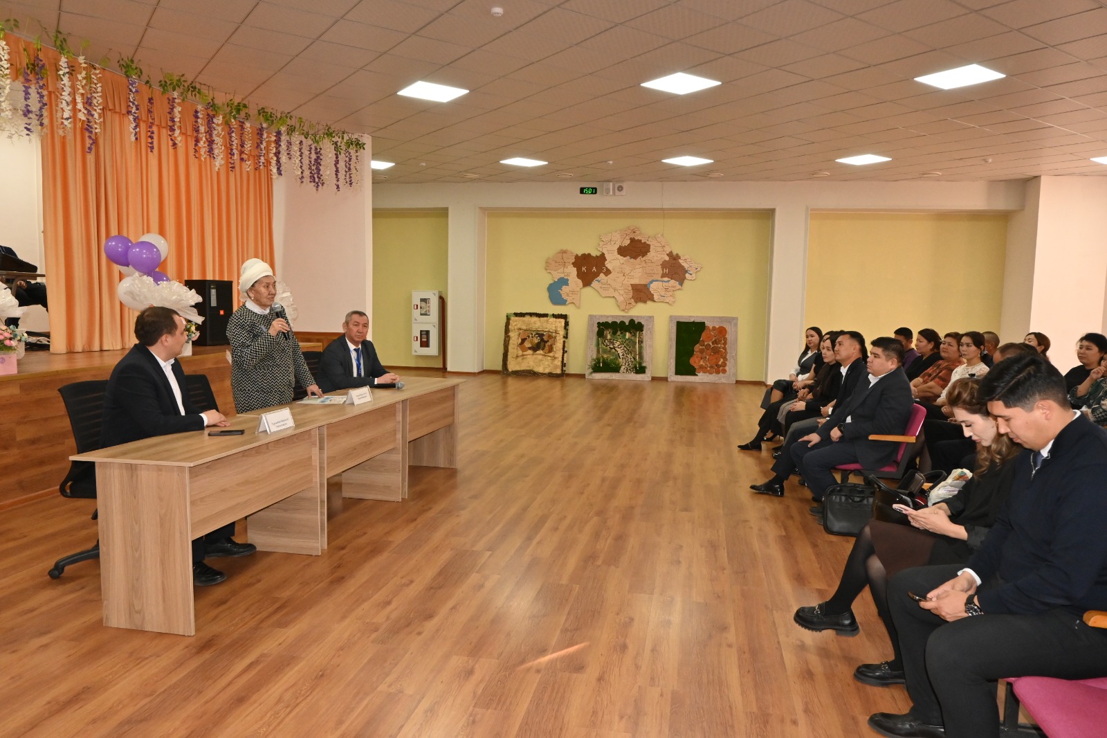 «Құрмет» орденінің иегері, ҚР Еңбек сіңірген қайраткері Сәуле Мешітбайқызы Жамбыл өңіріндегі аграрлы аудан болып есептелетін Тұрар Рысқұлов ауданына ат басын тіреп, алдымен аудан әкімінің орынбасары Бақкелді Тұрсынбекпен кездесті. Бақкелді Ғабдоллаұлы әрдайым ұлт мүддесін қаламына арқау етіп жүрген қоғам қайраткерін риясыз пейілмен қарсы алып, әкімдік ғимаратында пікір алмасып, аудандағы білім беру ұйымдарындағы негізгі көрсеткіштерді сөз етіп, өзара ой бөлісті.