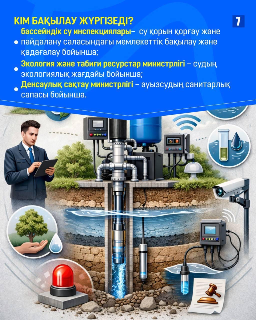 Ұңғыма иелері су деңгейі мен сапасын бақылауға және санитарлық талаптарды сақтауға міндетті. Жерасты суын пайдалануға арналған барлық құрылыс қоршаған ортаға және жерүсті су айдындарына зиян келтірмейтіндей етіп салынуы тиіс.