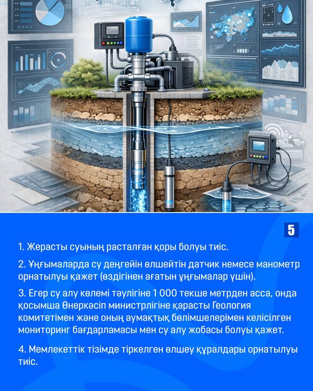 2. Ұңғымаларда су деңгейін өлшейтін датчик немесе манометр орнатылуы қажет (өздігінен ағатын ұңғымалар үшін).